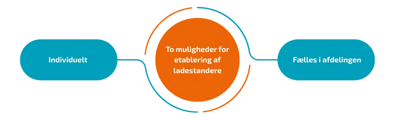 Ladestanderen kan etableres enten på lejerens egen parkeringsplads eller på et fælles parkeringsareal uden eksklusiv brugsret.