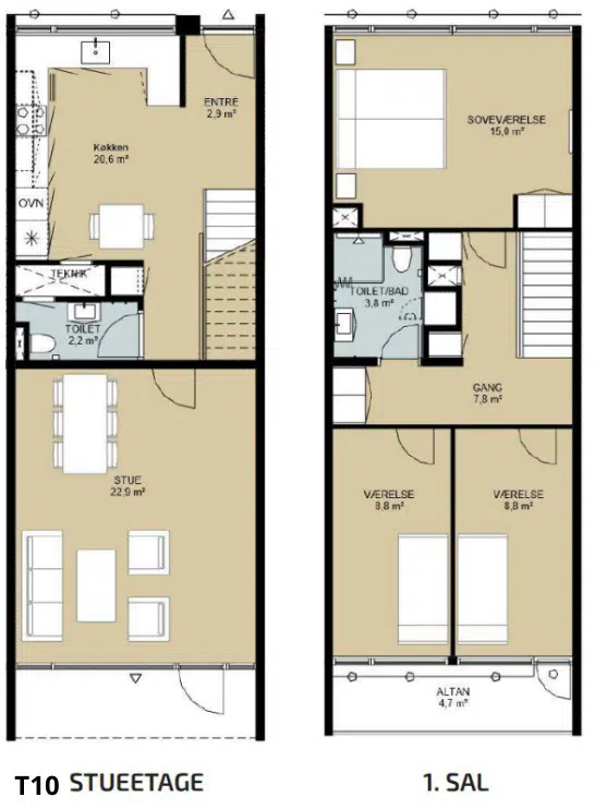 Hos Plus Bolig tilbyder vi moderne rækkehuse og lejligheder i Aalborg SØ. Rækkehusene har egen have, mens lejlighederne byder på enten terrasse eller altan.